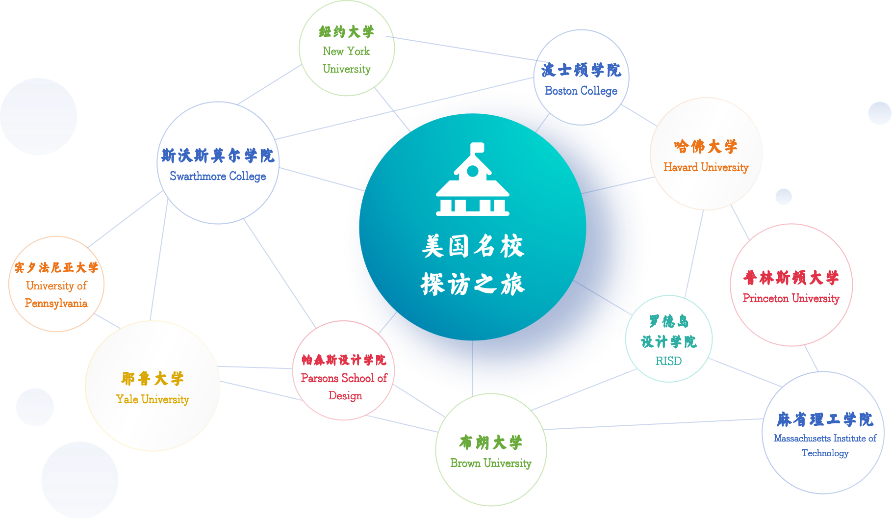 从走出梁思成、林徽因与特朗普的宾夕法尼亚大学,到培育出二十多位美国总统与大法官的耶鲁大学,校友榜上的熠熠星光,悄然勾起大家对大学生活的万千想象;漫步校园,纽约大学与城市相融的现代建筑,哈佛矗立百年的古典红楼,皆让同学们不自觉地代入其中,对大学生活生出诸多思索;从设计领域的帕森斯学院,到文理学院的斯沃斯莫尔学院,从公立名校纽约大学,到私立代表布朗大学,这些风格迥异的大学,为同学们未来的升学之路提供了宝贵参考。