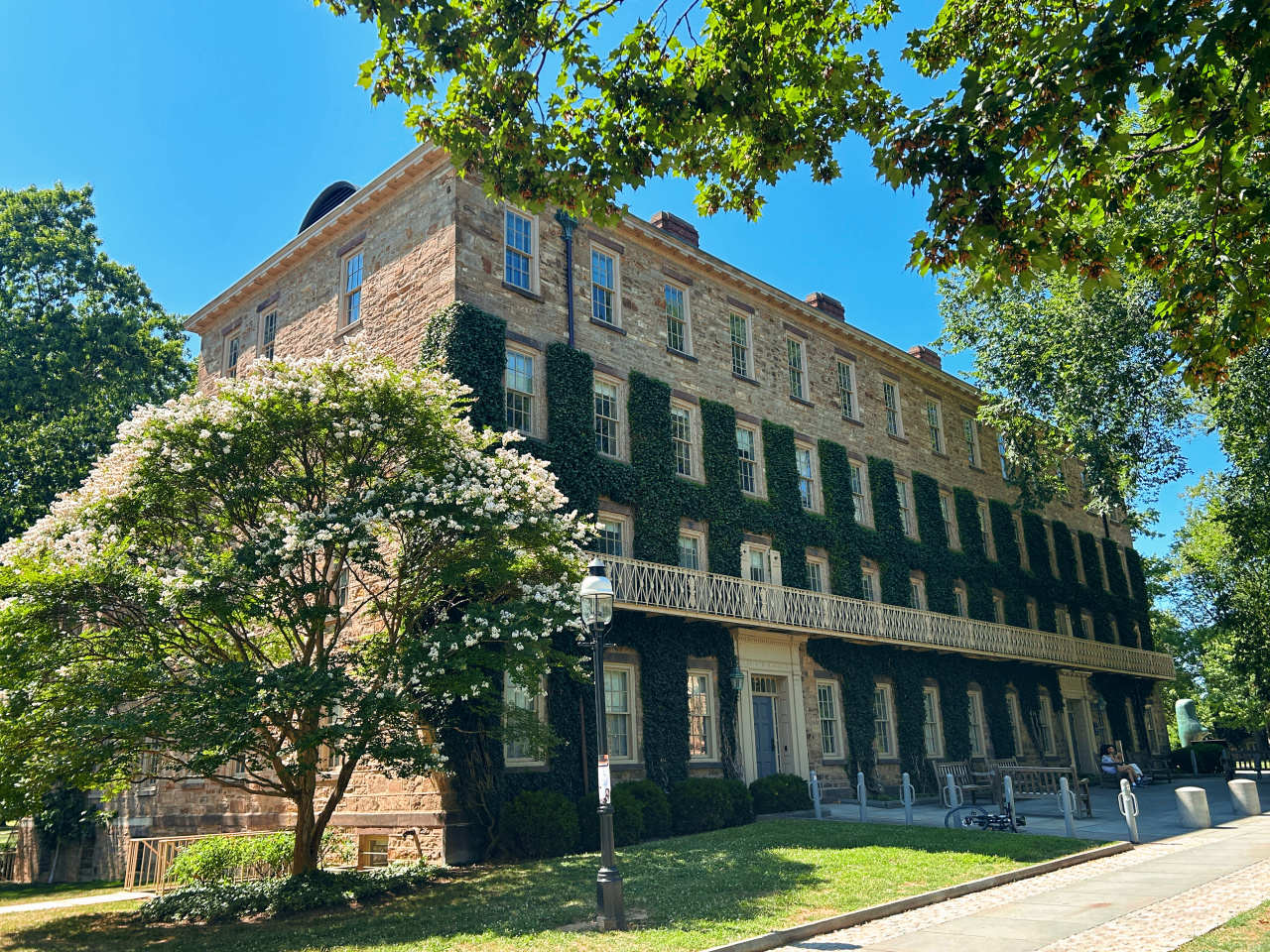 更独特的是其“导师制”,每个学生自大一起便会匹配一位教授作为学术导师,不仅指导选课,还会带领学生泡图书馆、做小课题。雨仍淅淅沥沥地下着,我们站在一栋爬满常春藤的教学楼前,仿佛能听见楼内传来的热烈讨论声——或许正是这样的课程与传统,让这所百年学府始终保持着鲜活的思想活力。